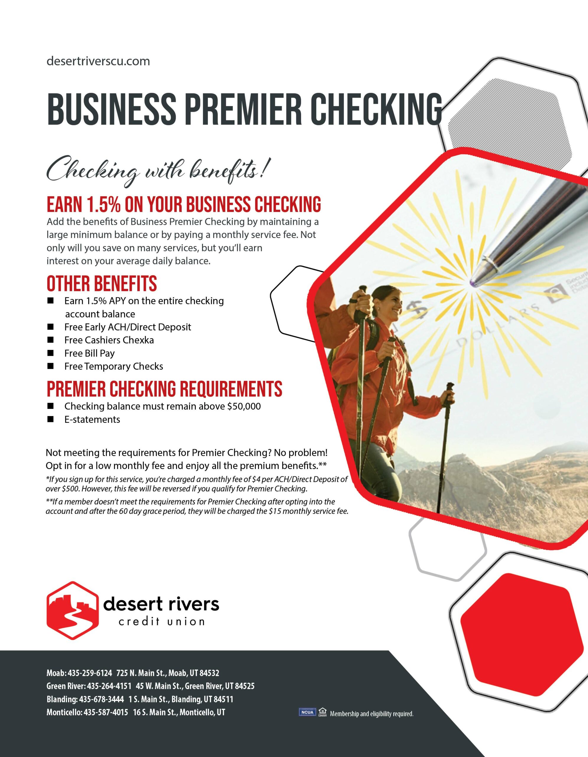 Not meeting the requirements for Premier Checking? No problem! Opt in for a low monthly fee and enjoy all the premium benefits.**